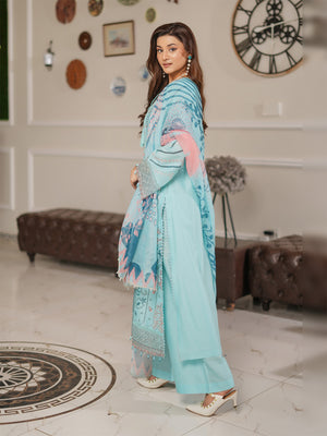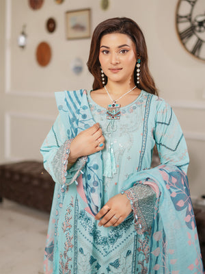 Munira Embroidered Lawn Suit (MSL-03) - Aqua Blue