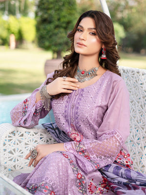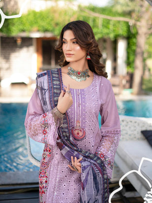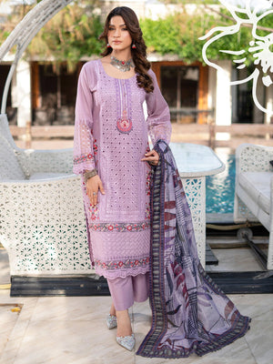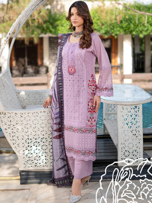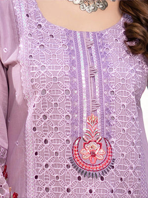 Munira Embroidered Lux Cotton Suit (MSL-01) - Lavender