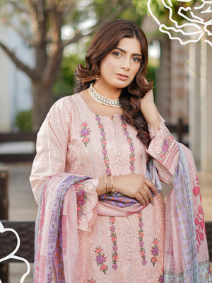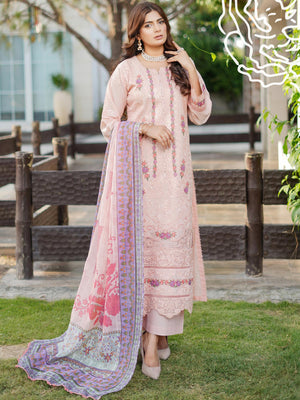 Munira Embroidered Lux Cotton Suit (MSL-03) - Peach