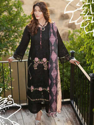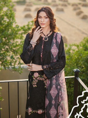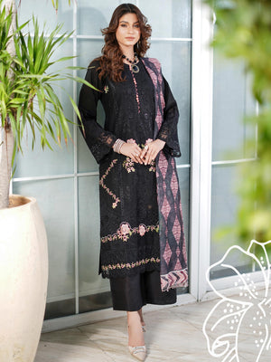 Munira Embroidered Lux Cotton Suit (MSL-05) - Black