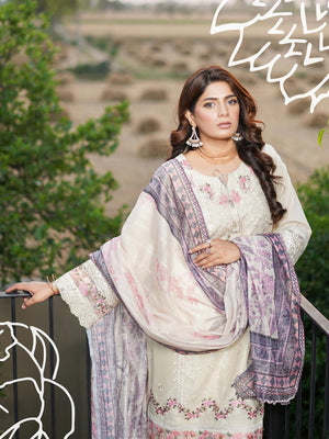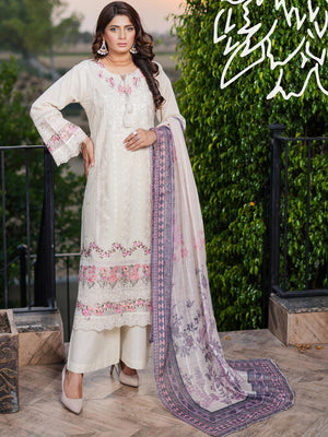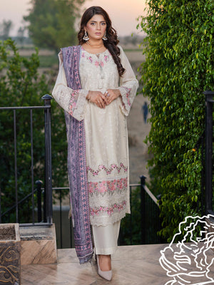 Munira Embroidered Lux Cotton Suit (MSL-06) - Off-White