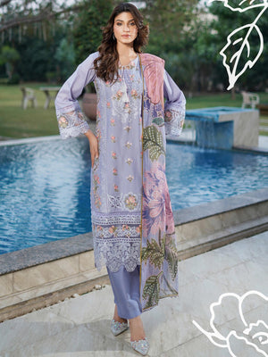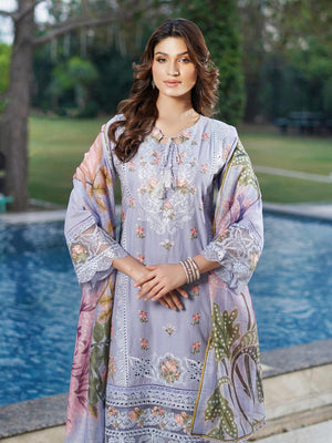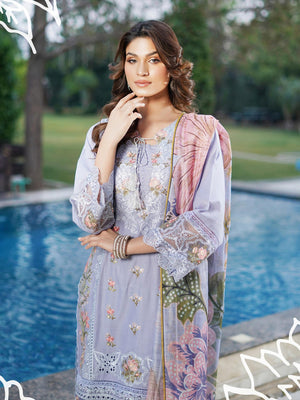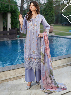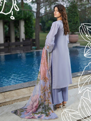 Munira Embroidered Lux Cotton Suit (MSL-07) - Periwinkle Blue