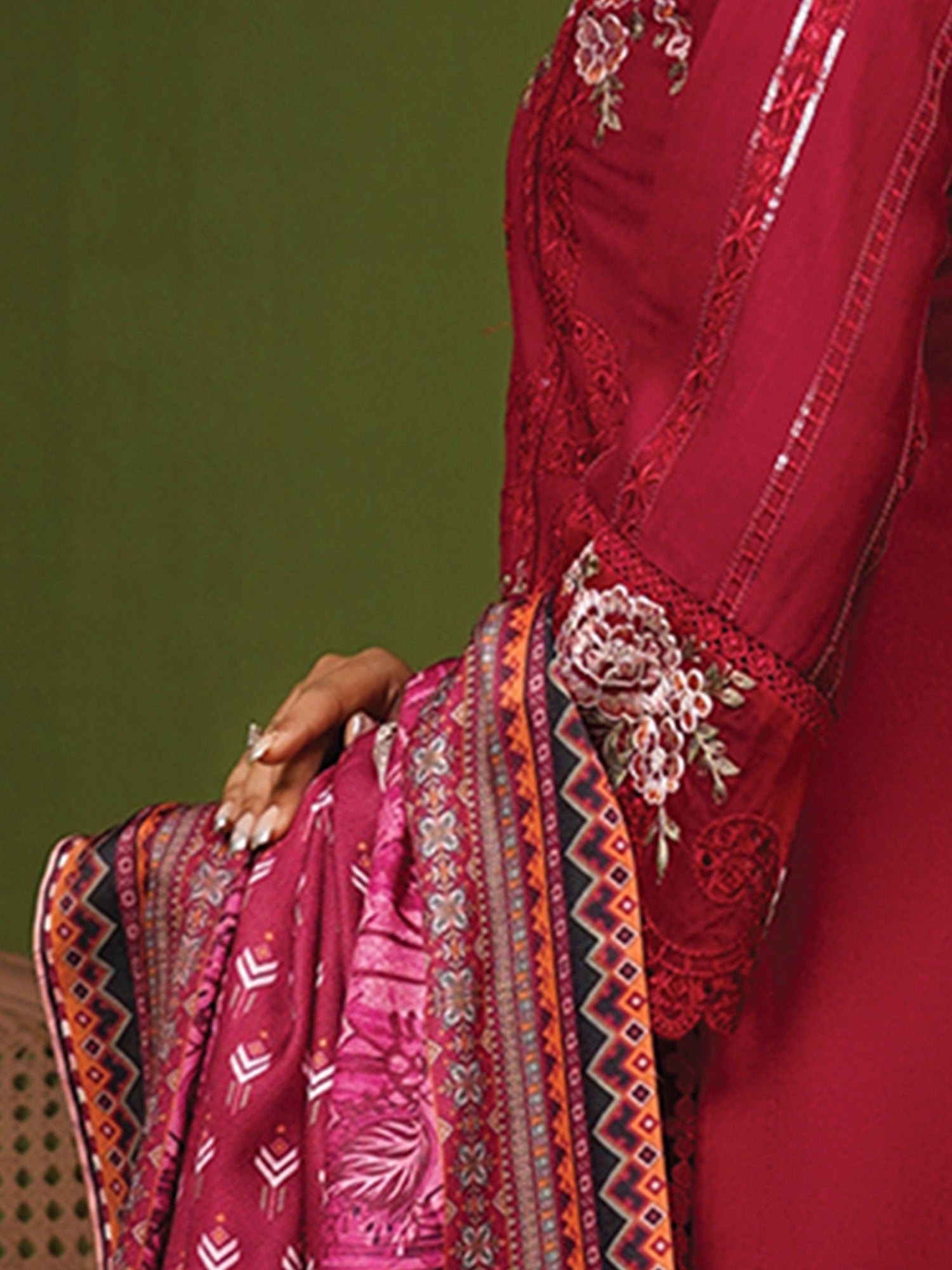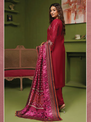 Munira Embroidered Winter Dhanak Suit (MSL-02) - Red