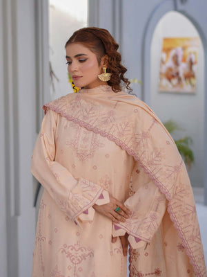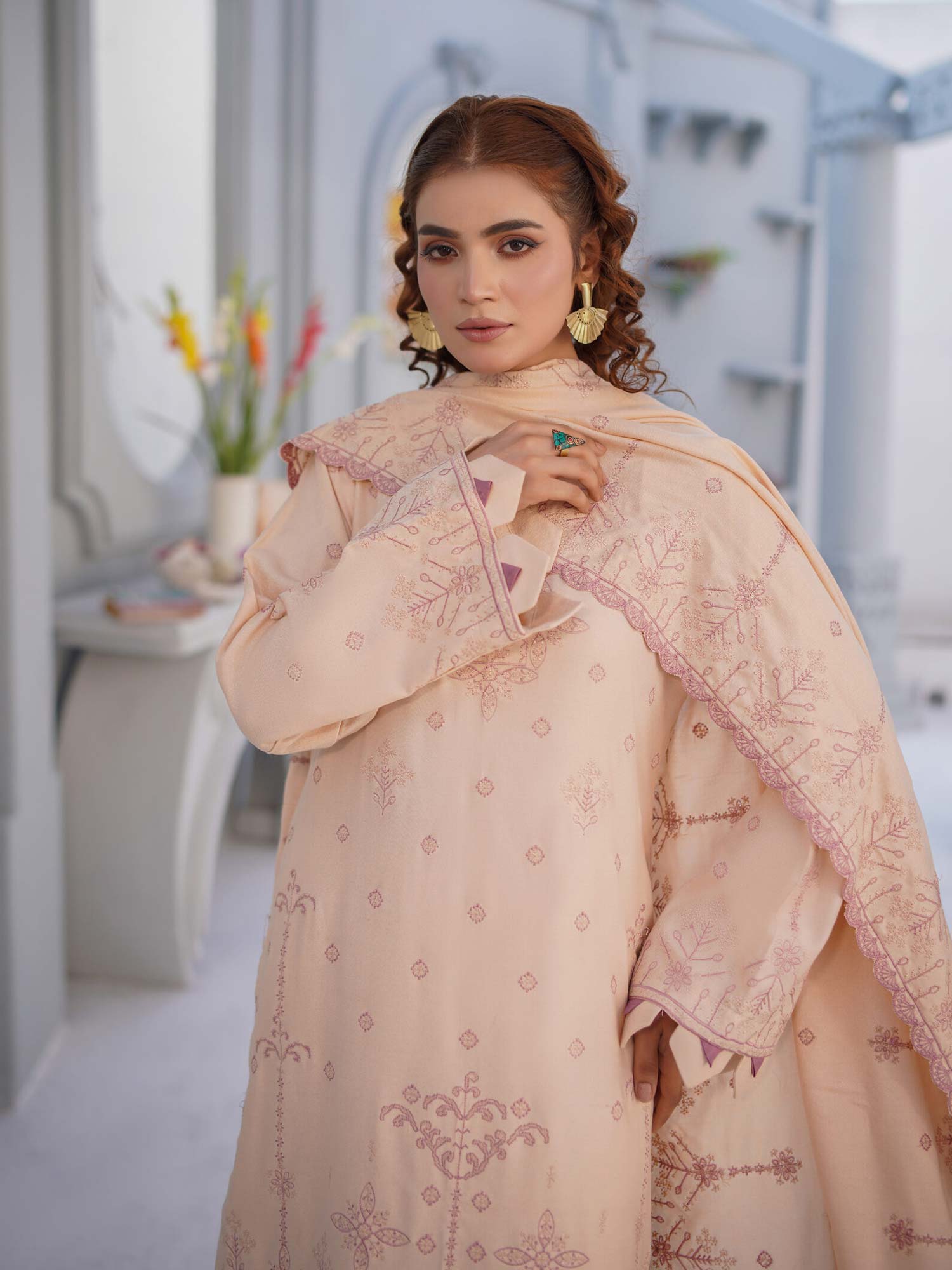 Manizay "Umang" Unstitched Winter Leather-Peach Suit (M-03)