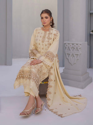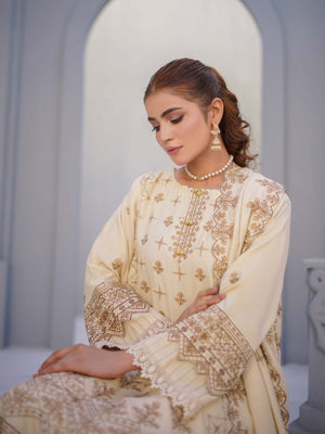 Manizay "Umang" Unstitched Winter Leather-Peach Suit (M-05)