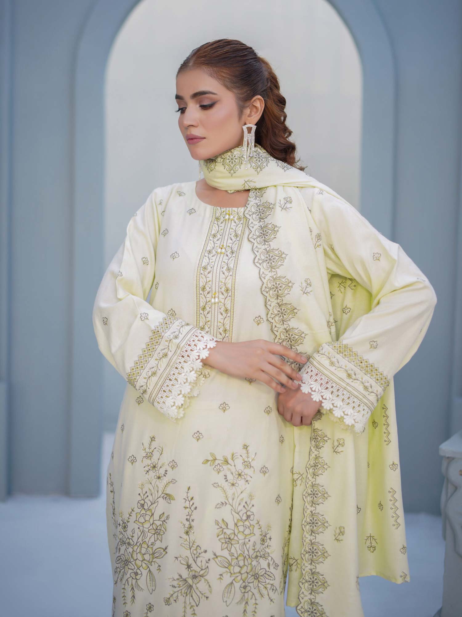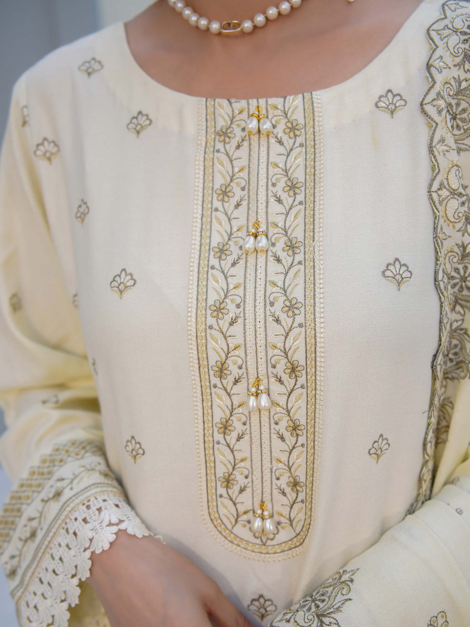Manizay Umang Premium Embroidered Peach Leather With Embroidered Wool Shawl