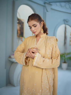 Manizay "Umang" Unstitched Winter Leather-Peach Suit (M-10)