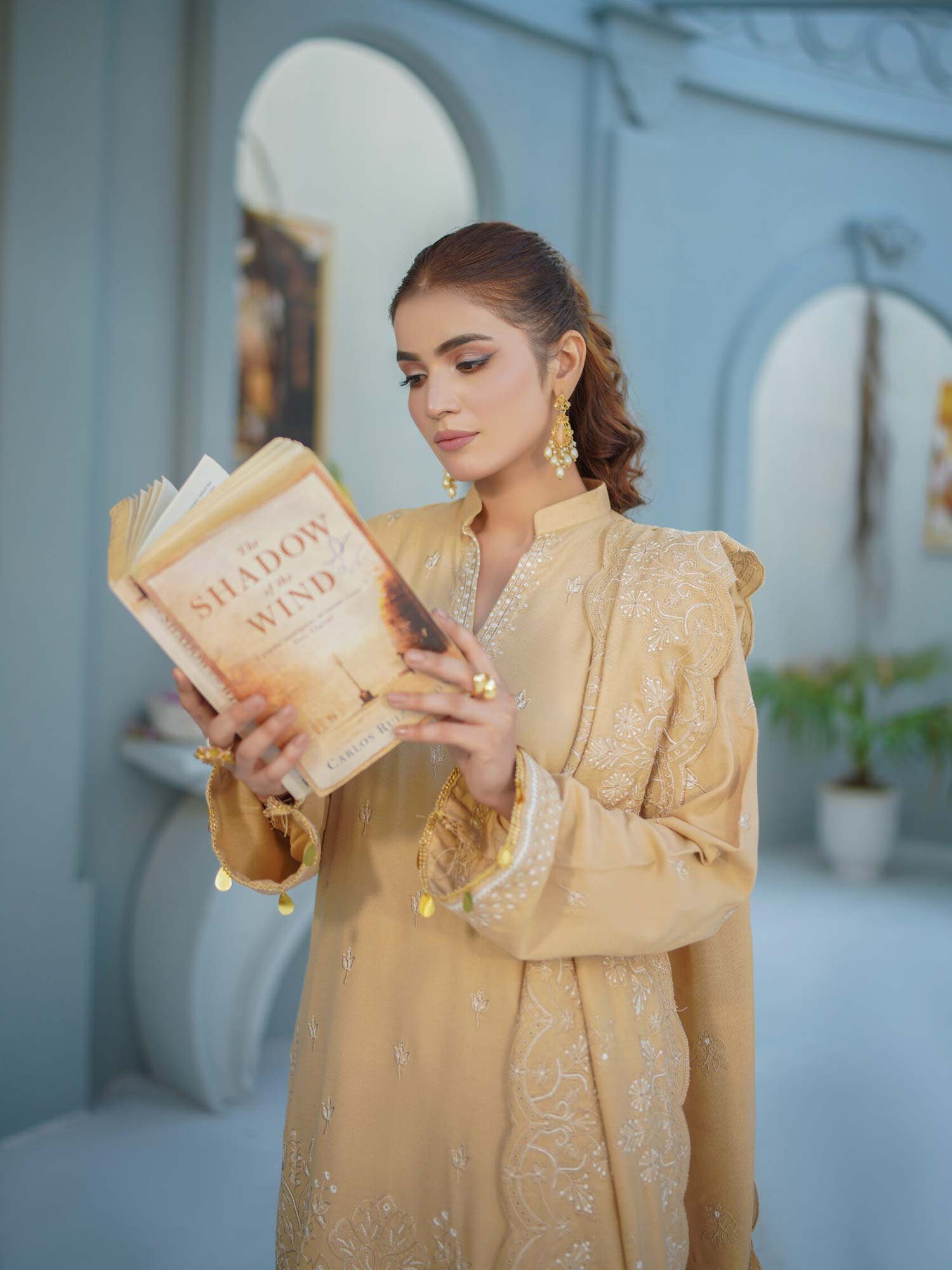 Manizay Umang Premium Embroidered Peach Leather With Embroidered Wool Shawl