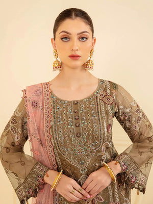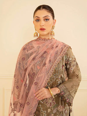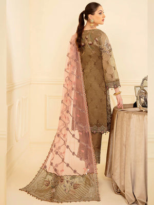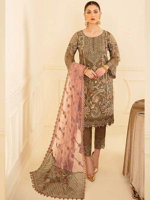 Ramsha "Minhal" Luxury Embroidered Suit - Brown