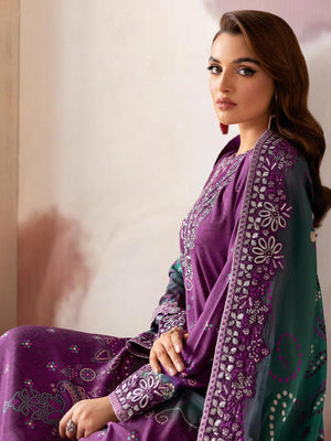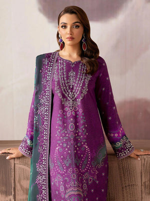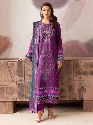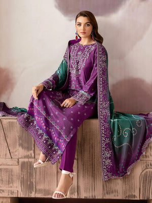 Ramsha "Riwaj" Luxury Embroidered Rawsilk Suit - Plum (K-510)
