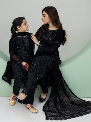 Rangz Chiffon Mother-Daughter Embroidered 3-Piece Suit - Black