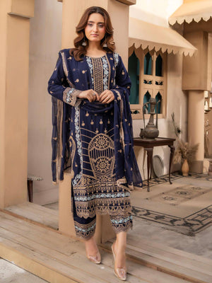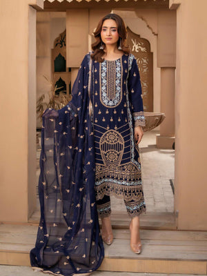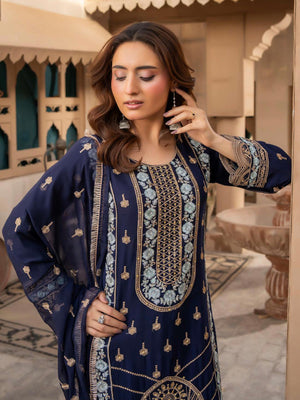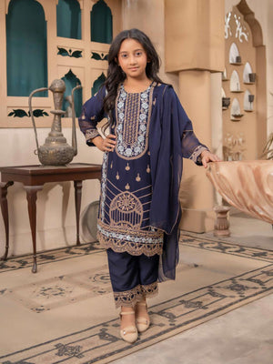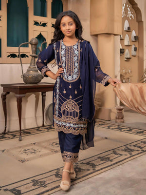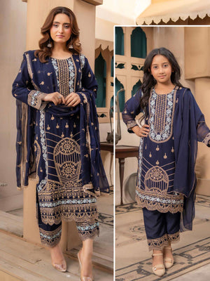 Rangz Chiffon Mother-Daughter Embroidered 3-Piece Suit - Navy Blue