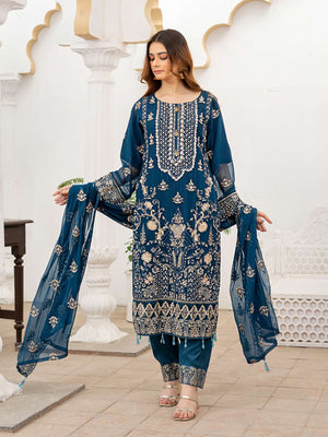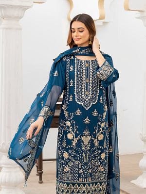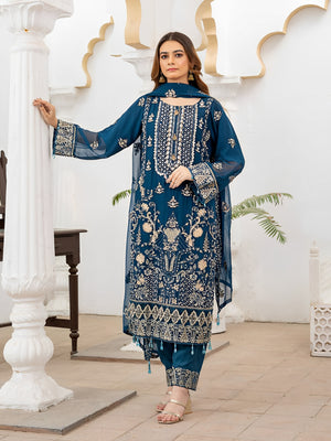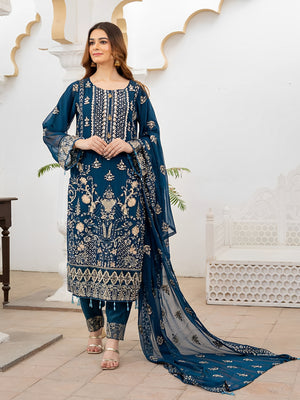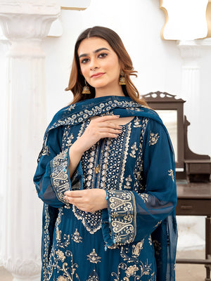 Rangz Luxury Embroidered Chiffon 3pc Suit - Teal