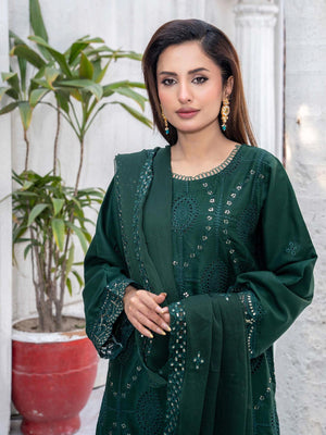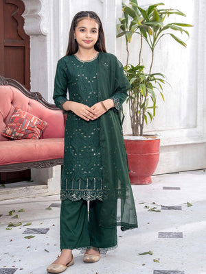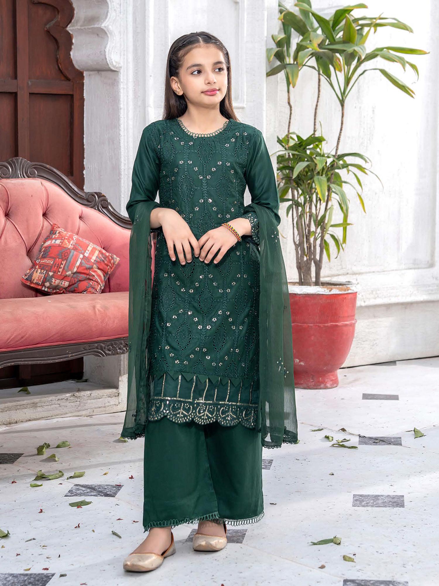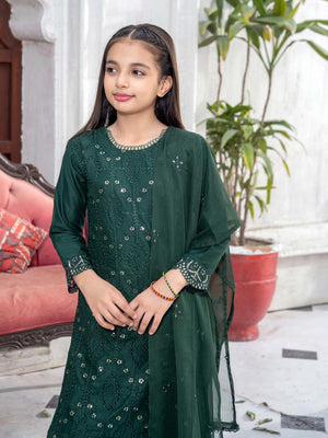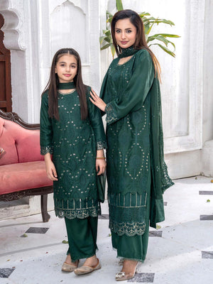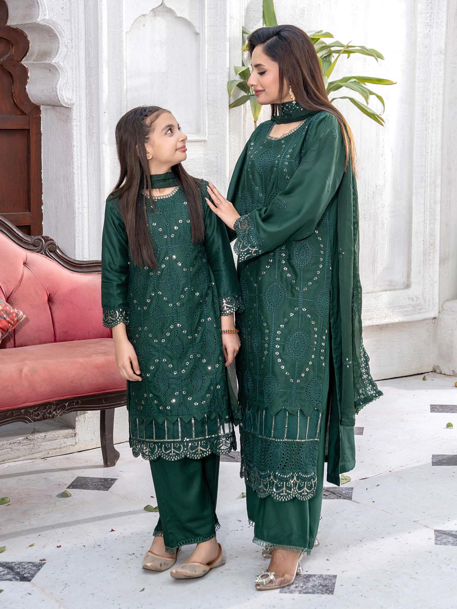 Rangz Mother-Daughter Linen Embroidered Chikankari Suit - Green