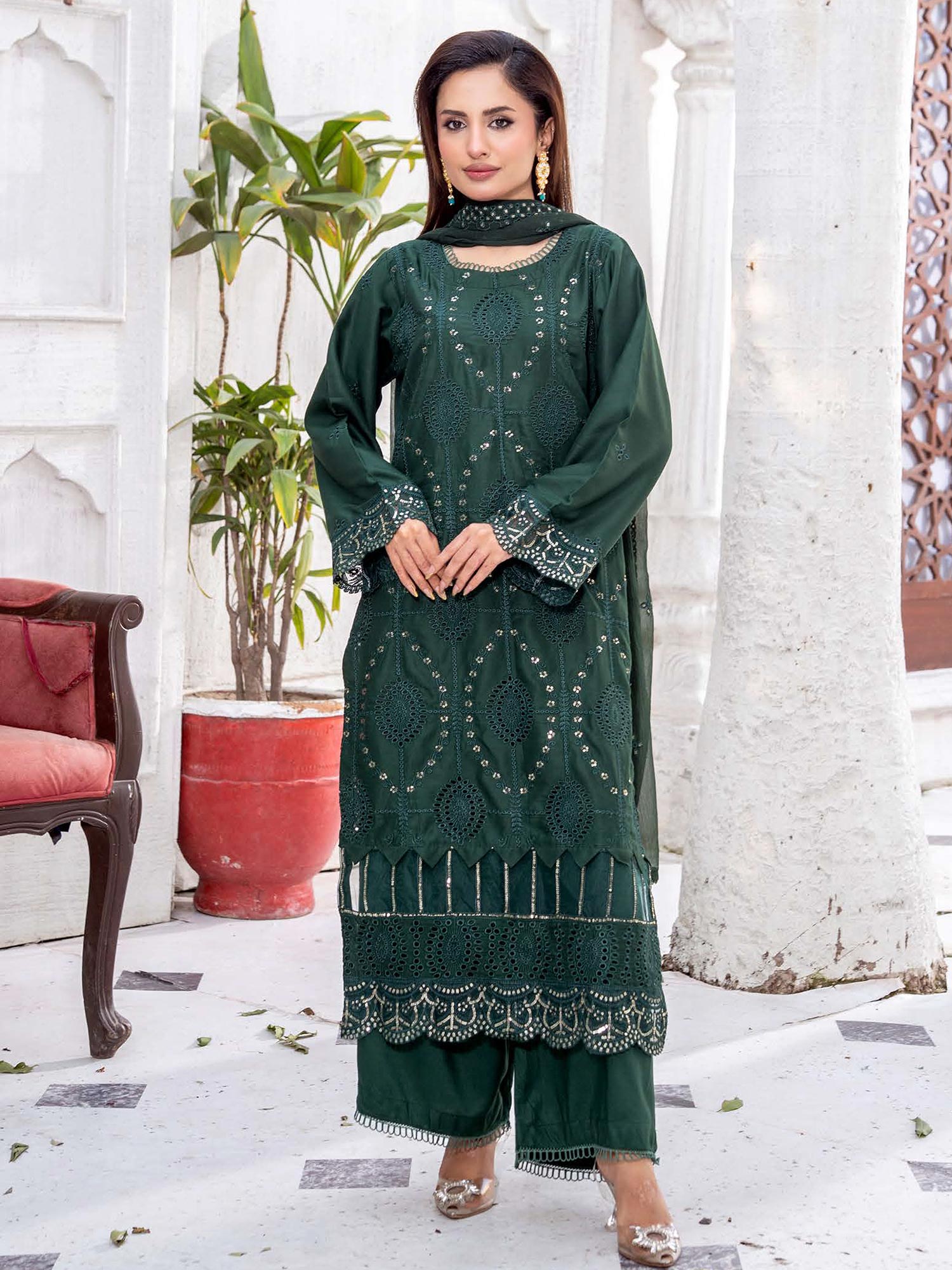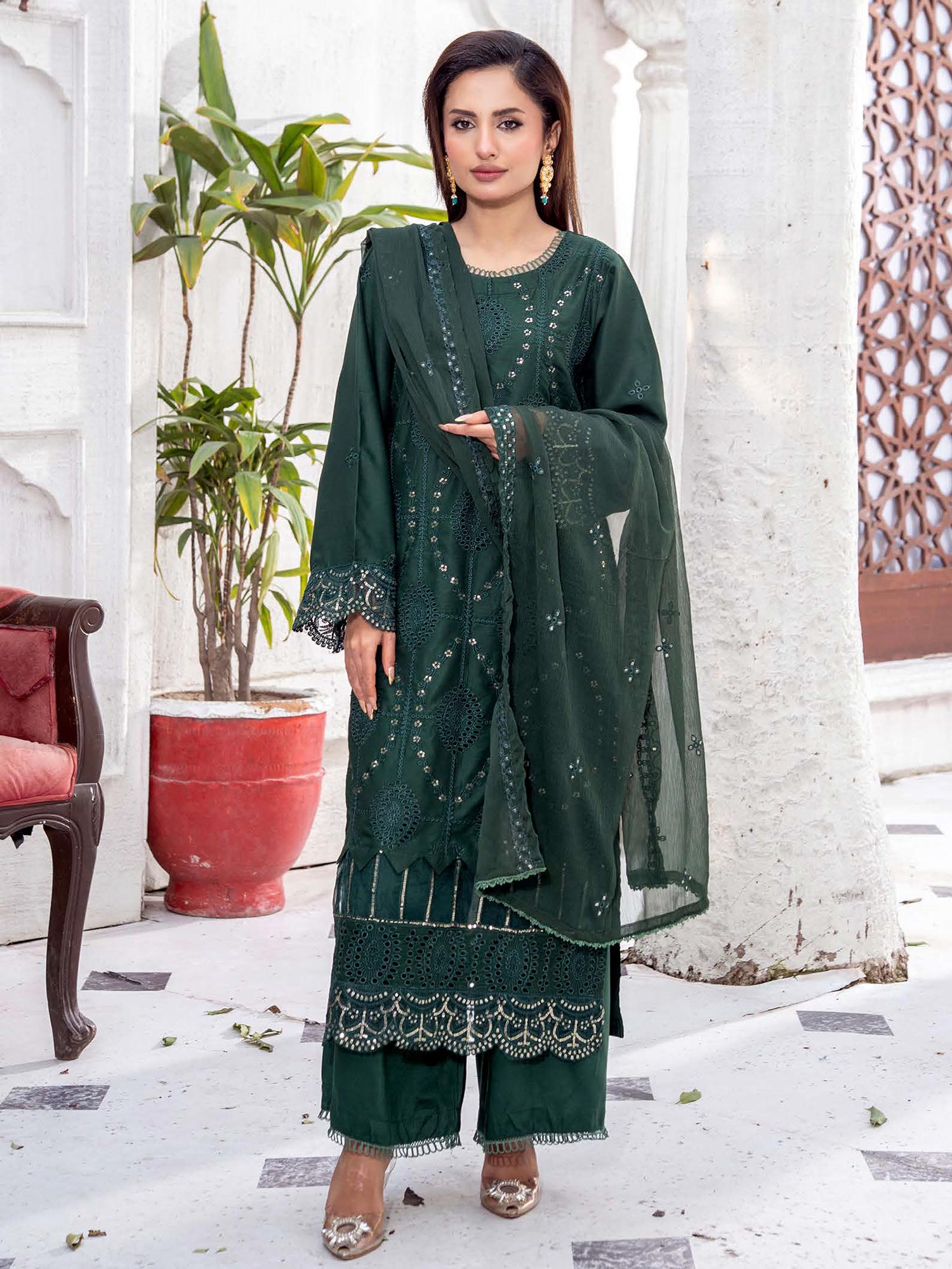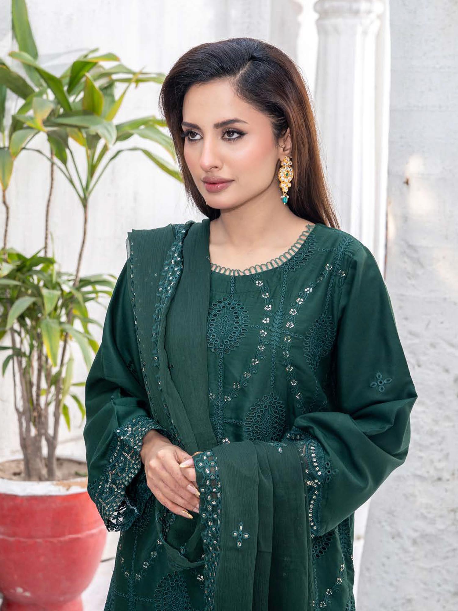 Rangz Mother-Daughter Linen Embroidered Chikankari Suit - Green
