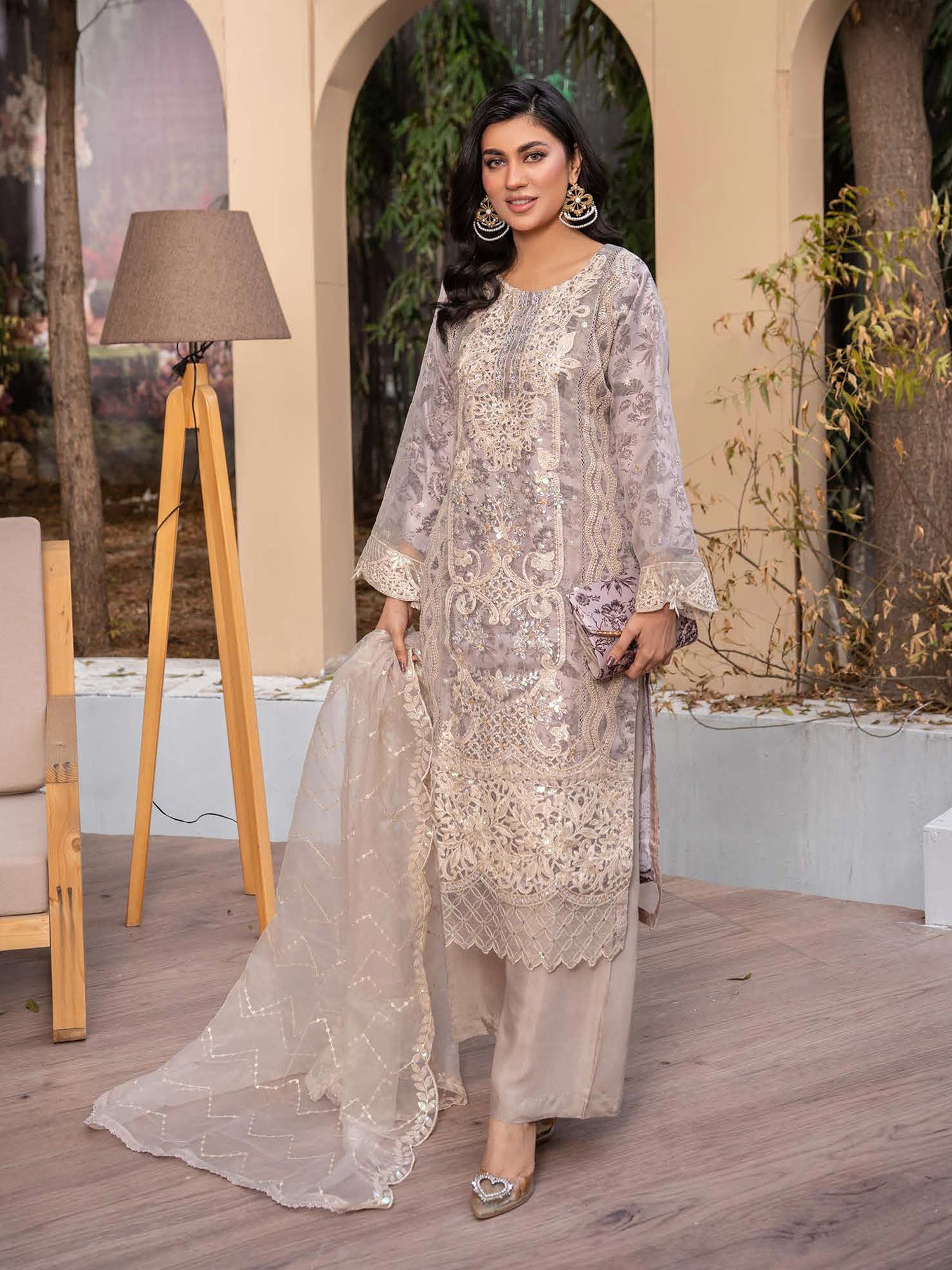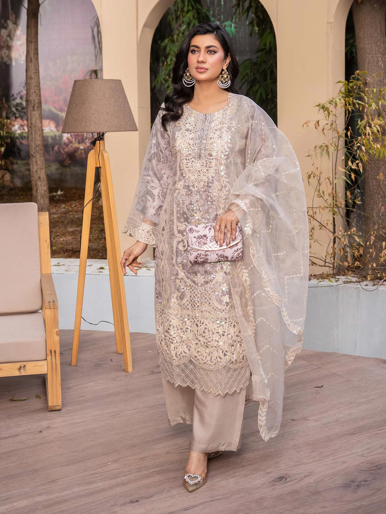 - Embroidered organza dupatta