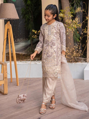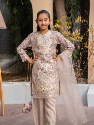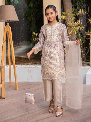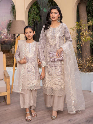 Rangz Mother-Daughter Lux Organza Suit with Clutch - Beige