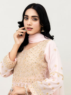 Rangz Pink Luxury Chiffon Embroidered 3-Piece Maxi Suit