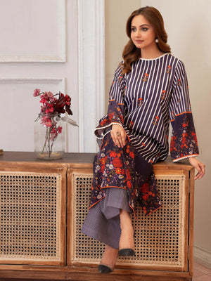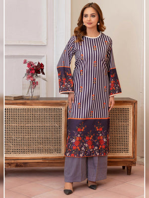 Zinia is a refined fusion of elegance and contemporary style, tailored from premium grip silk. Its vertical stripes lend a flattering, elongated silhouette, while vivid floral borders along the hem and sleeves infuse a delicate, feminine touch. Light and effortlessly comfortable, this ensemble is ideal for casual get-togethers or stylish everyday outings.