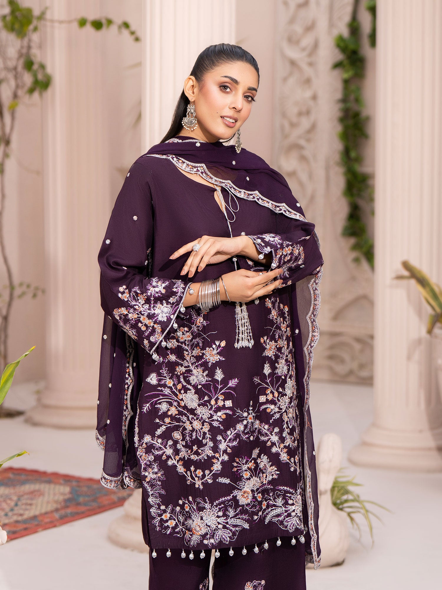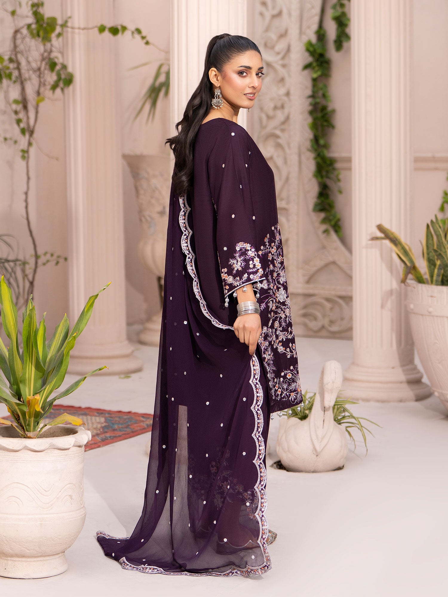 - Dupatta: A lightweight, sheer dupatta with light embroidery and beautiful border all around.
