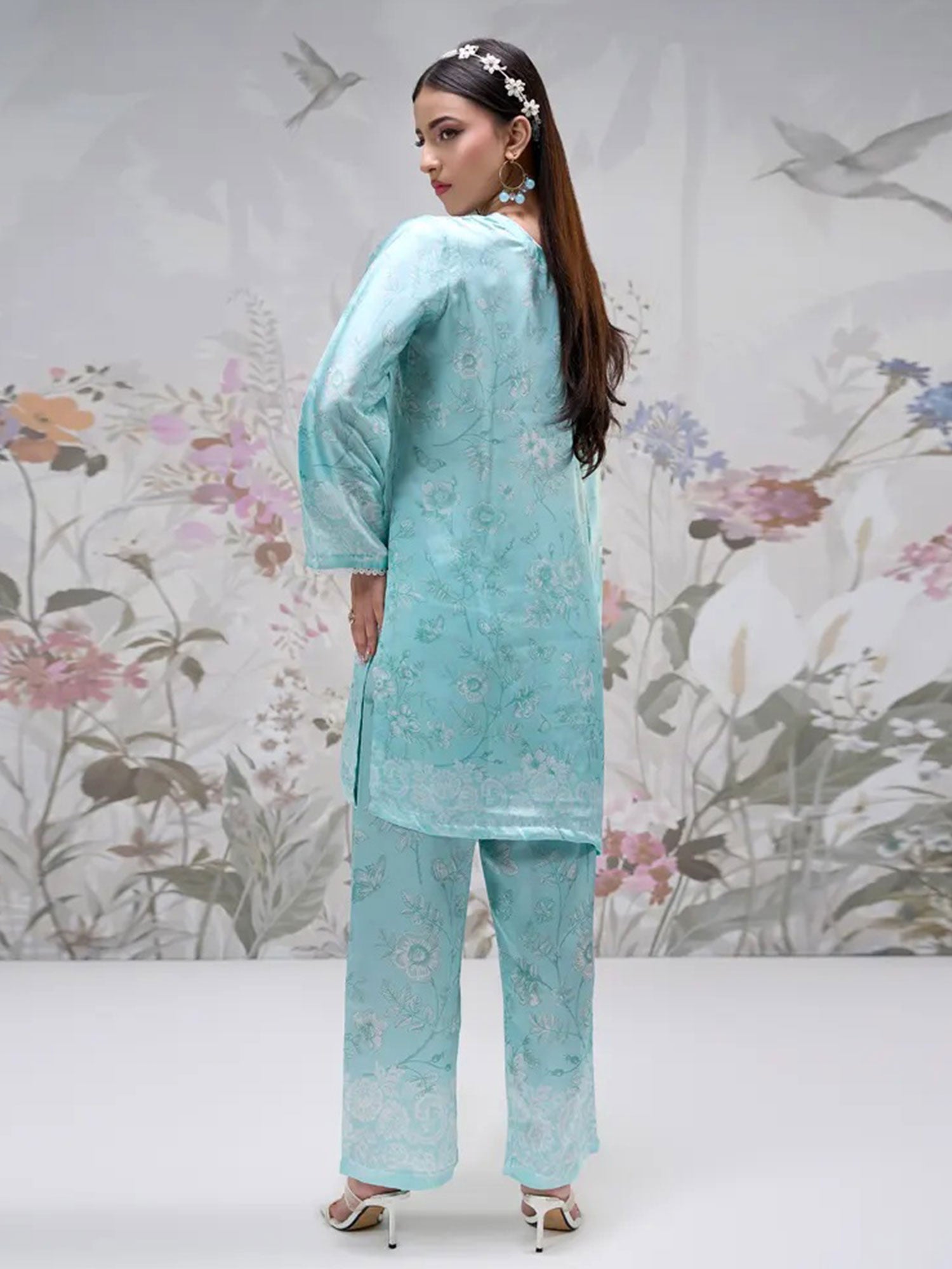 - Matching silk digital printed trousers