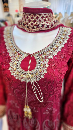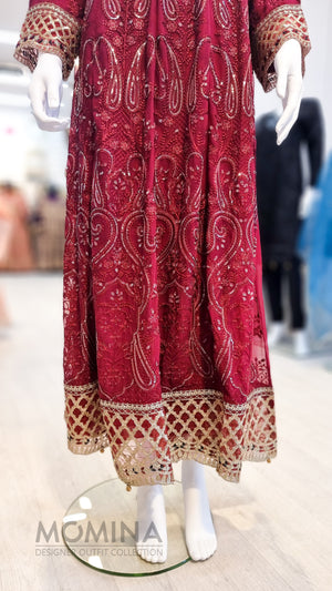 RMAW Maroon Chiffon Embroidered Long Dress Suit