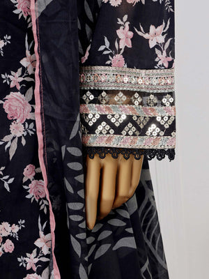 Sadabahar "Raya" Embroidered Lawn 3-Piece Suit - Black
