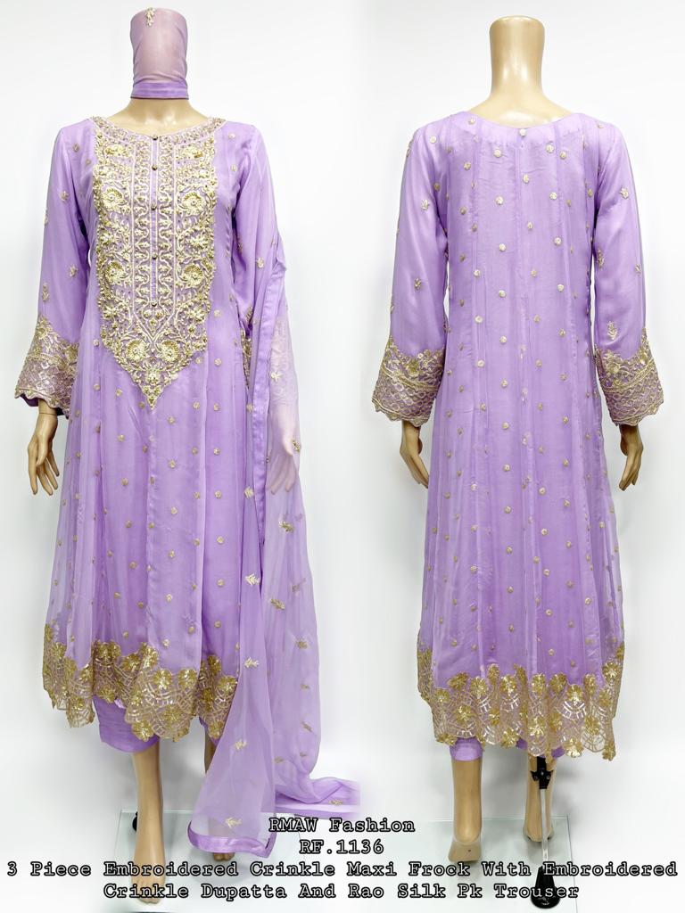 RMAW Lilac Chiffon Embroidered Long Maxi Dress Suit