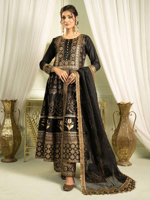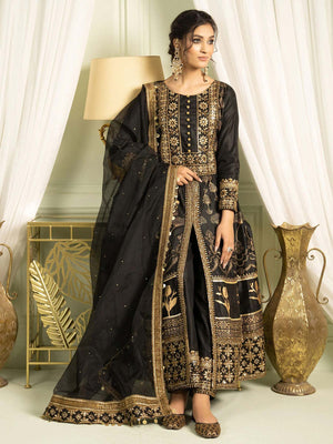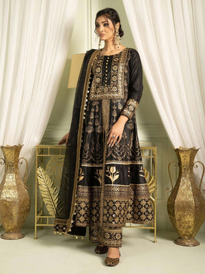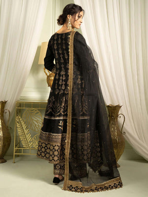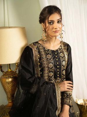 Sha Posh Chambray Katan Embroidered Frock Suit - Black