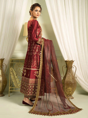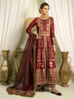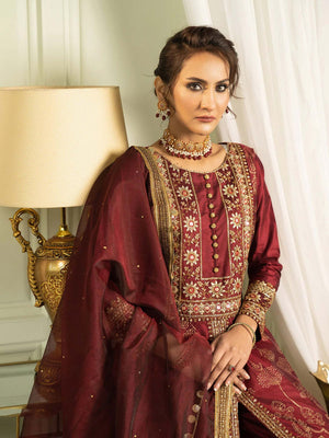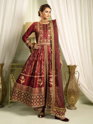 Sha Posh Chambray Katan Embroidered Frock Suit - Maroon