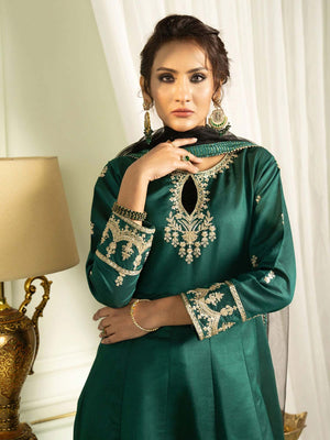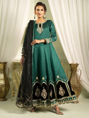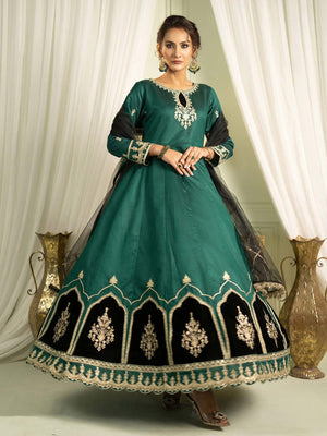 Sha Posh Embroidered Chambray Katan Maxi Suit - Green