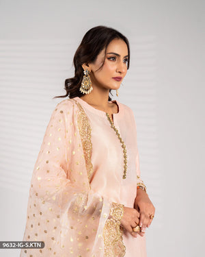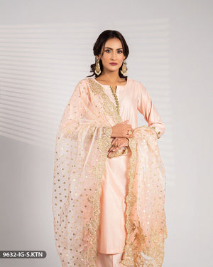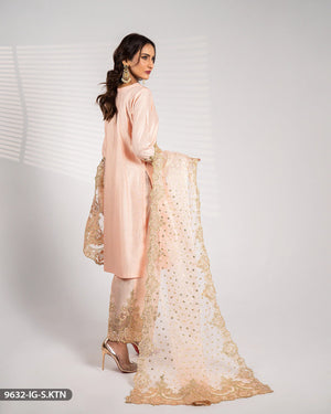 Sha Posh Embroidered Chambray Katan Suit - Peach