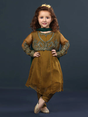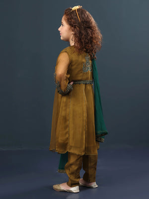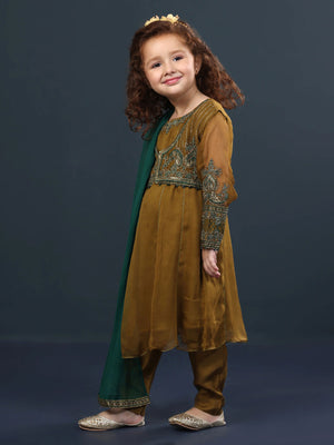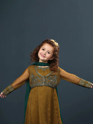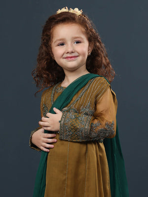 Sha Posh Kids Chiffon Embroidered Suit - Mehndi