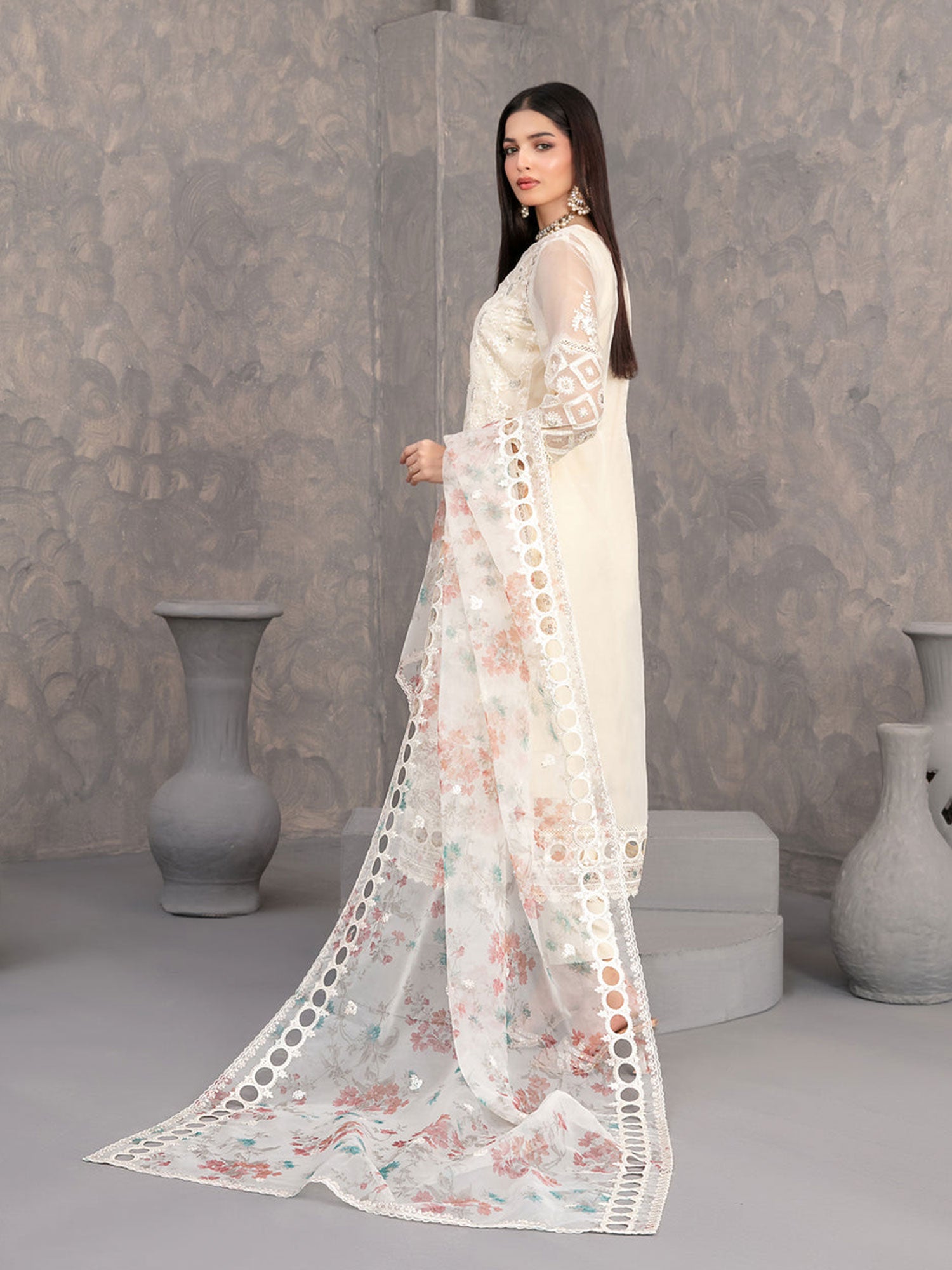 Tawakkal "Dilkash" Heavy Embroidered Organza Suit (D4273) - Light Cream