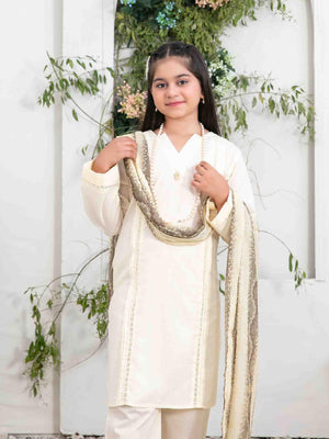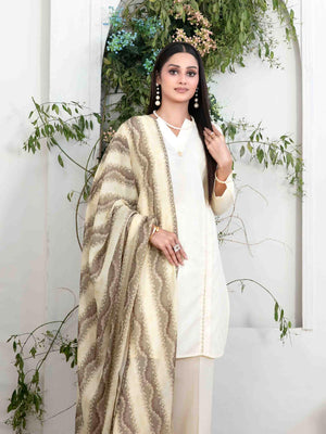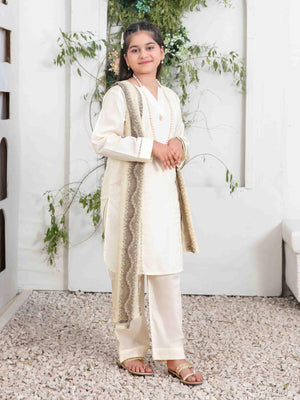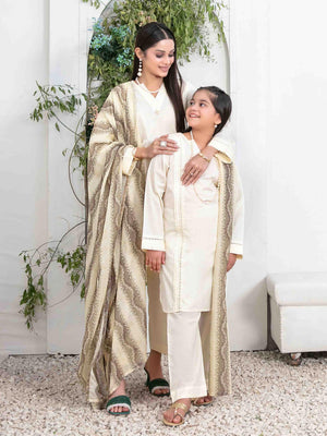 Tawakkal "Mahperi" Mother-Daughter Lawn Jacquard Suit (D1521) - Cream