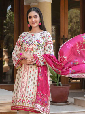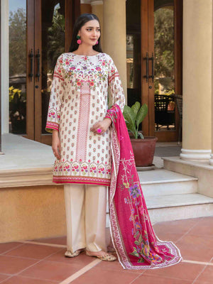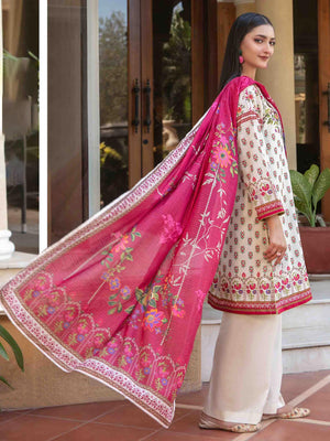 Tawakkal "Masooma" 3-Piece Lawn Suit (D1499) - Ivory & Pink