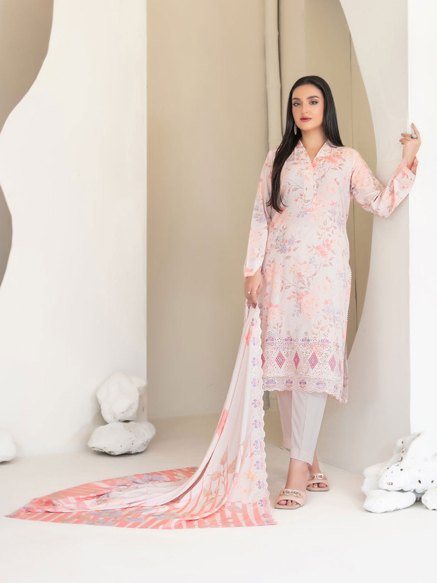 Tawakkal "Muskaan" Schiffli Embroidered Staple Linen Suit (D4416) - Pink