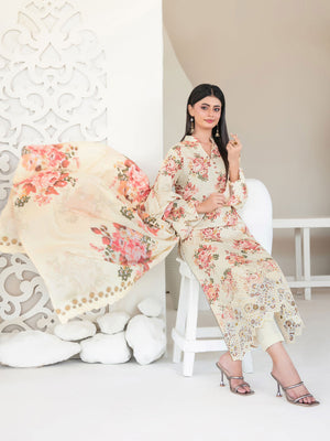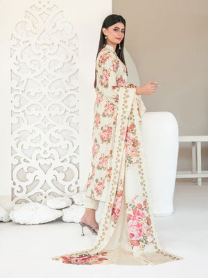 Tawakkal "Muskaan" Schiffli Embroidered Staple Linen Suit (D4417) - Cream
