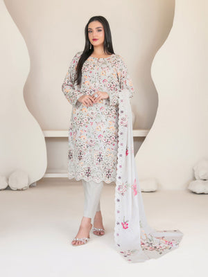Tawakkal "Muskaan" Schiffli Embroidered Staple Linen Suit (D4418) - Grey