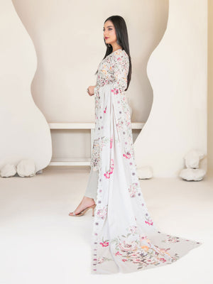 • Embroidered Digital Printed Staple Linen Shawl Dupatta