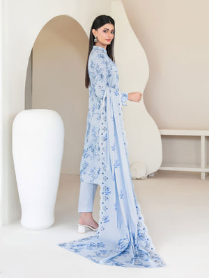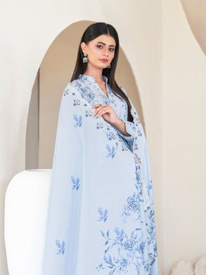 Tawakkal "Muskaan" Schiffli Embroidered Staple Linen Suit (D4424) - Light Blue