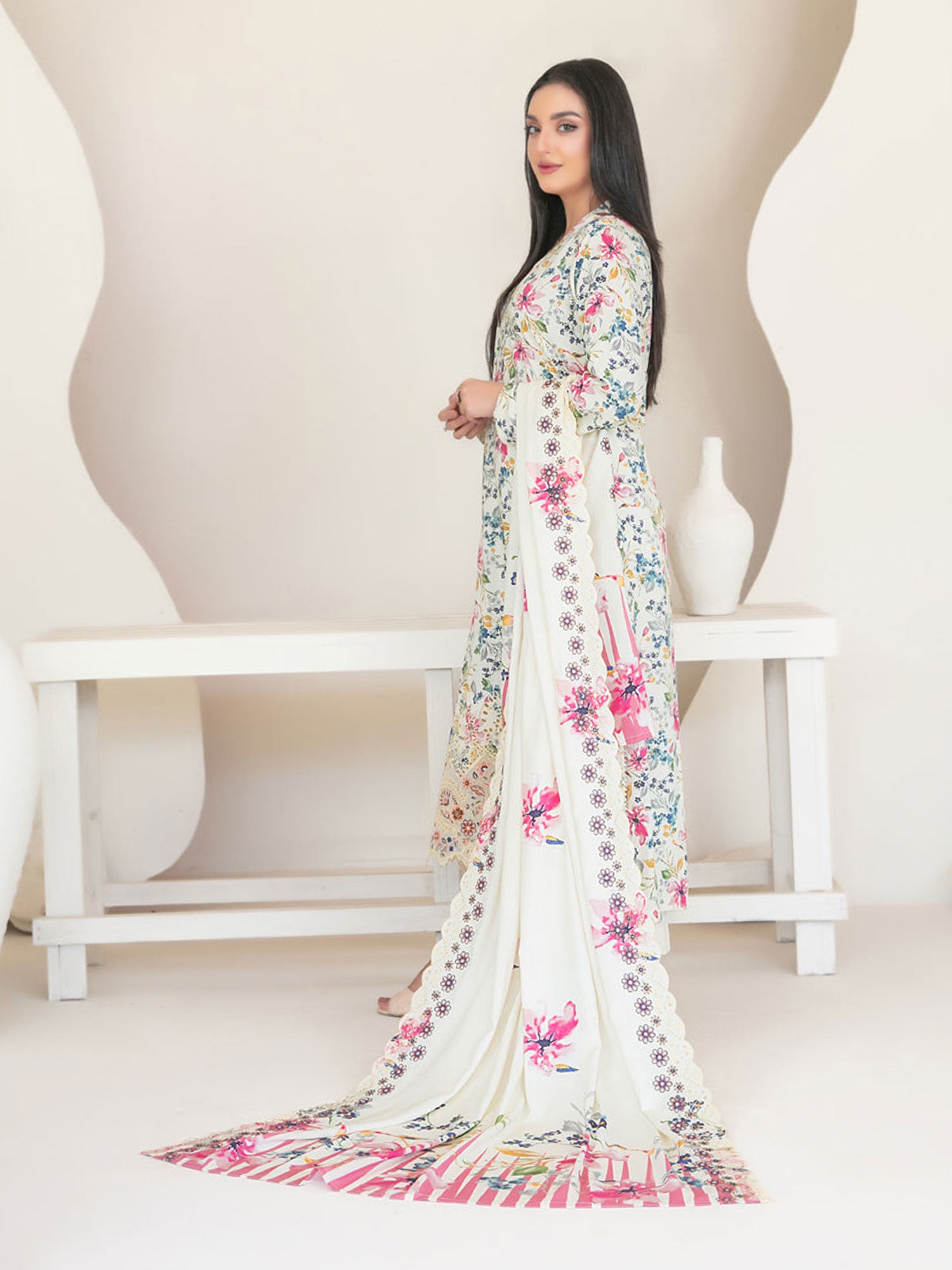 Tawakkal "Muskaan" Schiffli Embroidered Staple Linen Suit (D4425) - Cream