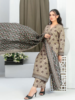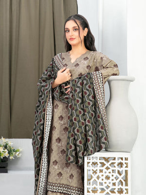 Tawakkal "Nazma" Khaddar 3-Piece Suit (D5082) - Olive-Brown