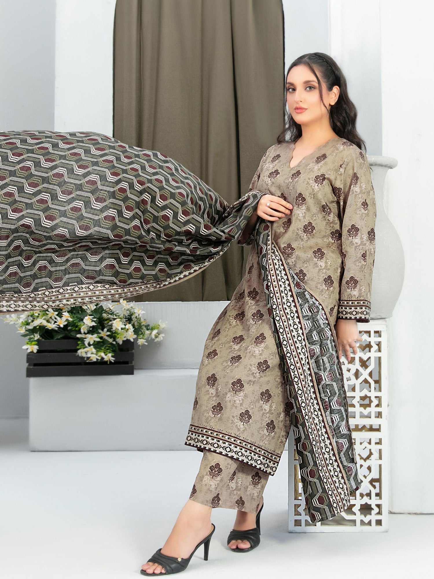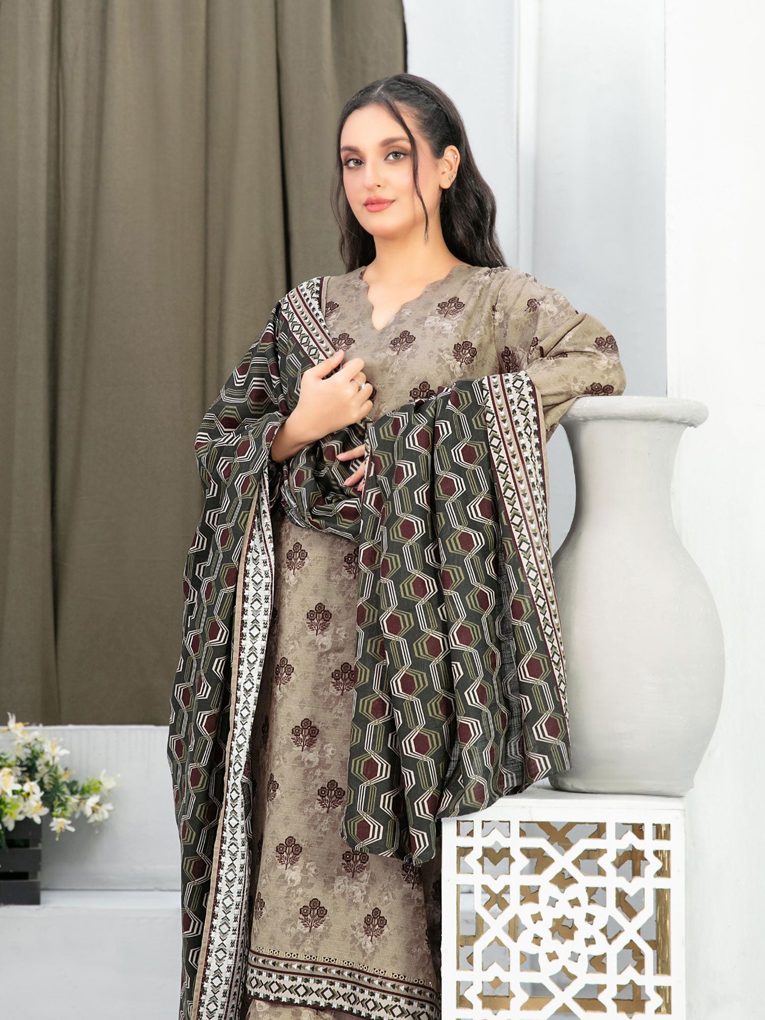 - Exclusive Rotary Printed Khaddar Dupatta