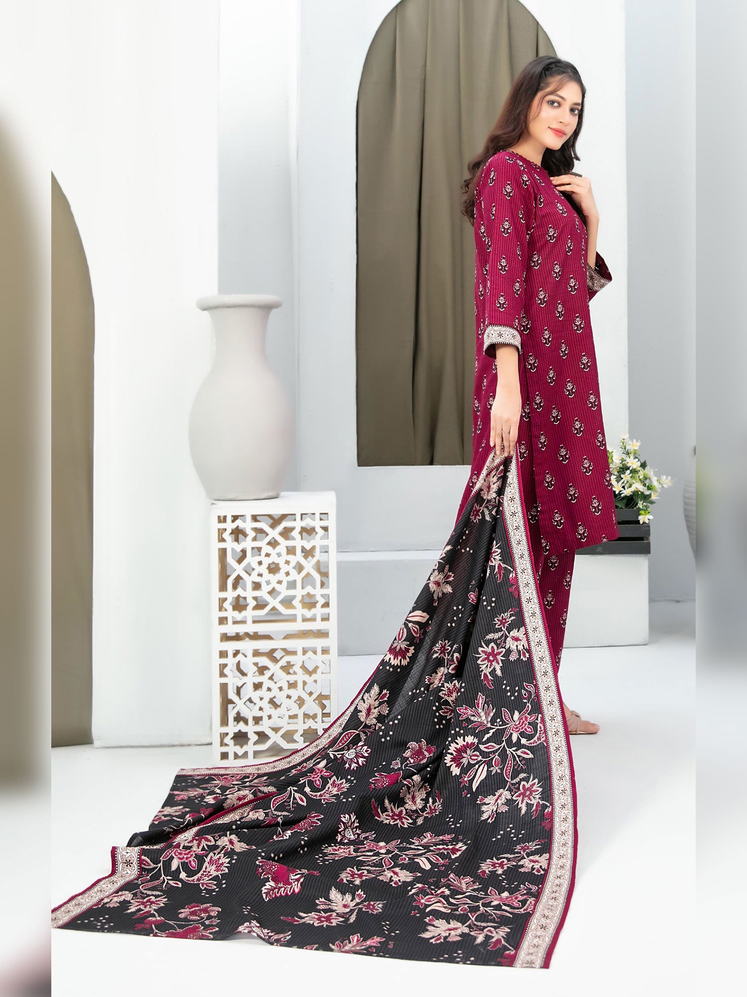 - Exclusive Rotary Printed Khaddar Dupatta