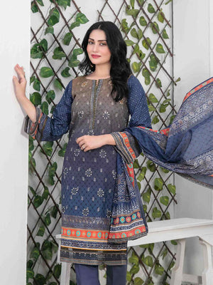 - Stitched Embroidered Digital Printed Lawn Shirt with Embellishments
