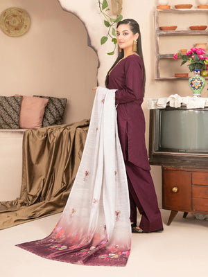 Tawakkal "Pushpa" Cotton Jacquard Farshi Shalwar Suit (D1541) - Maroon