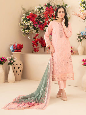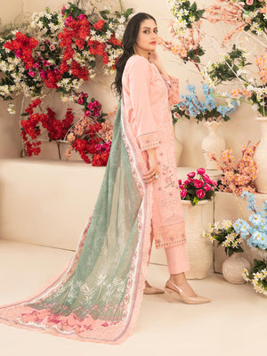 Tawakkal "Saiba" Embroidered Semi-Stitched Suit (D1152) - Peachy-Pink