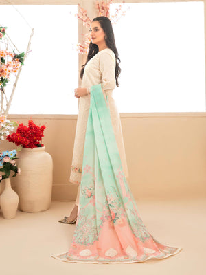 Tawakkal "Saiba" Embroidered Semi-Stitched Suit (D1158) - Cream