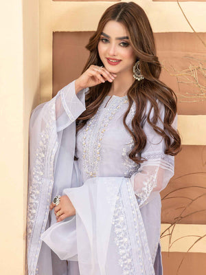 Tawakkal "Taalea" Embroidered Organza Suit (D2184) - Blue-Grey